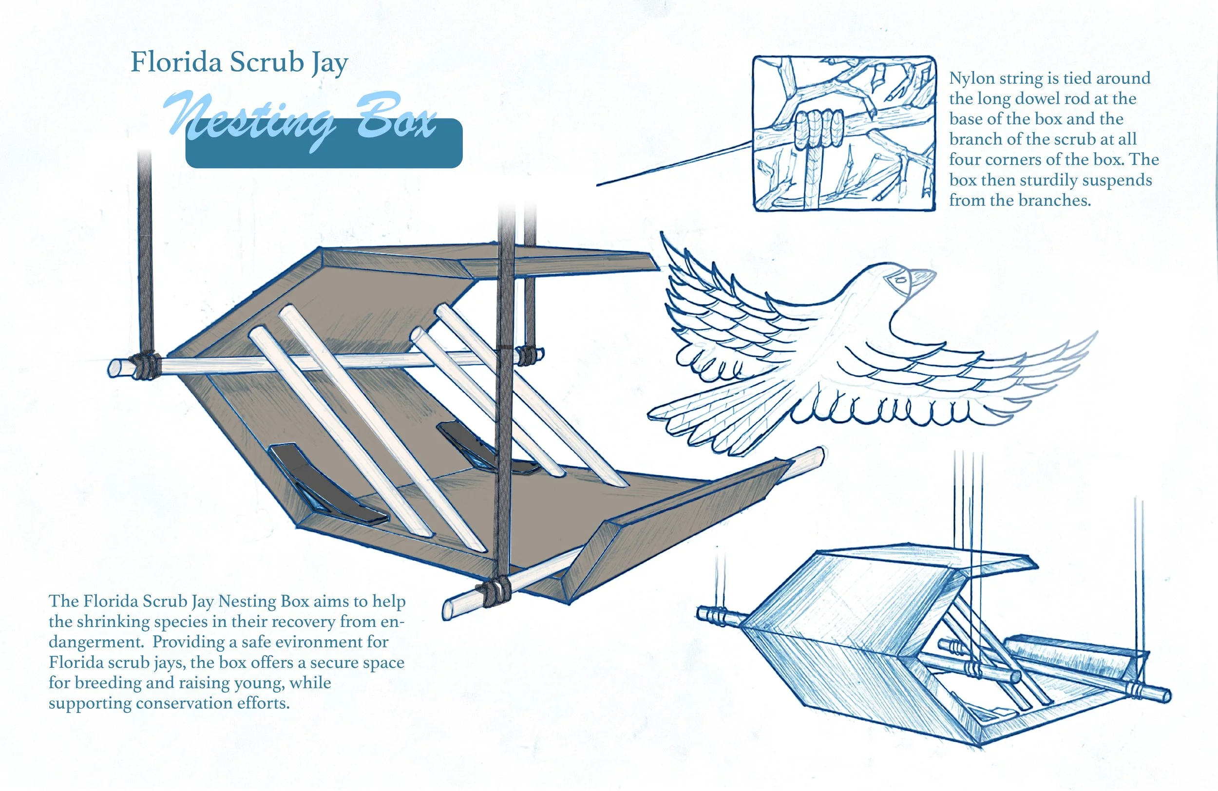 Since Florida scrub jays prefer open areas to nest in, similar to their natural habitat of scrubs, I decided to further explore the design directions that best fit those essential needs.