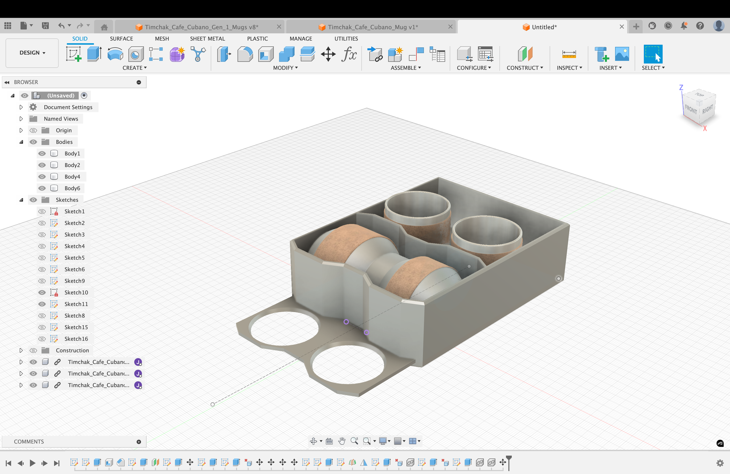 As I was moving closer towards a final moka pot and mug design, I further explored how to design a component case that securely houses the pot and mugs and bolts directly onto the side of the rig.