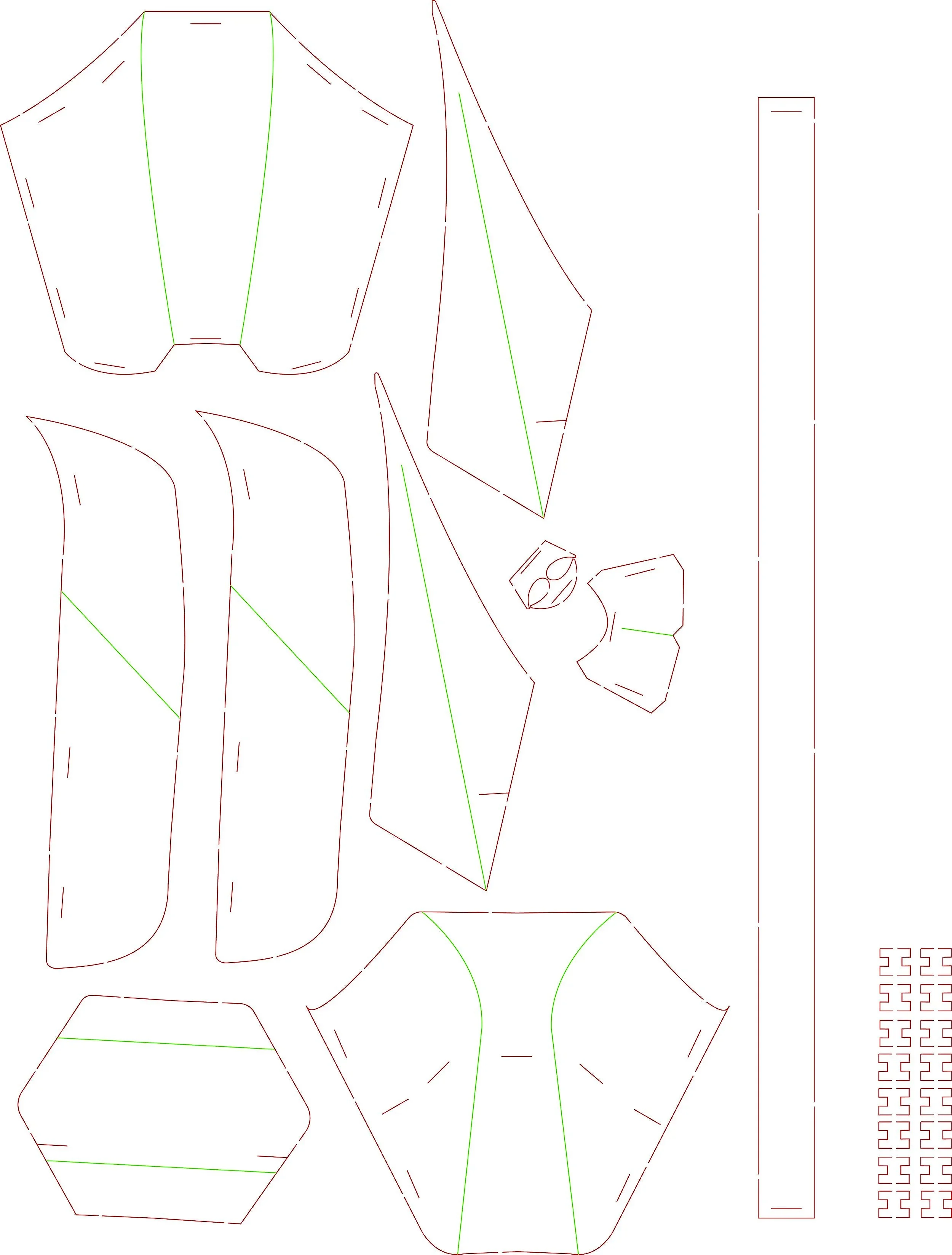 The final mask’s parts were precisely cut via an illustrator file containing all pieces needed to cut the mask that was sent to the Kongsberg machine.